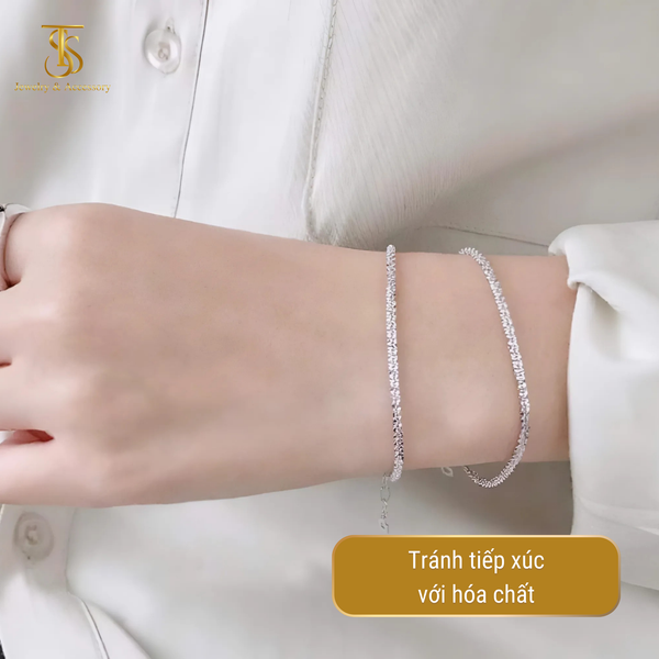 Hãy tháo trang sức khi đi bơi hoặc khi bạn tiếp xúc với nước biển. Nếu bị ướt, hãy lau khô ngay lập tức bằng khăn mềm.