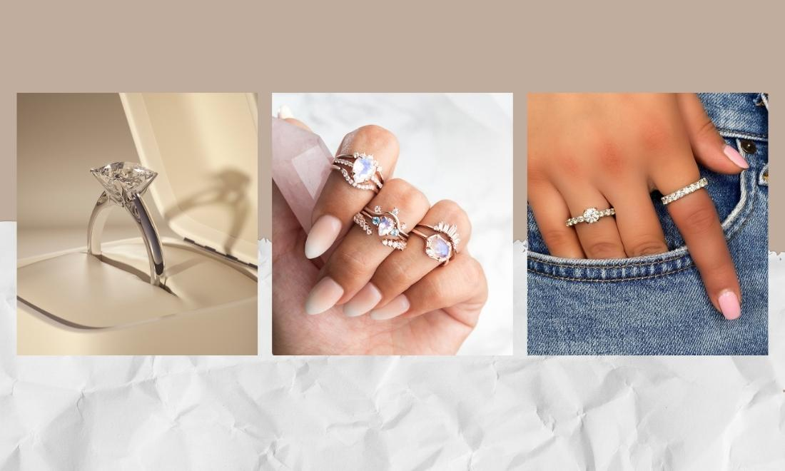 - Các loại phổ biến: Nhẫn đính đá, nhẫn Signet, nhẫn stacking.